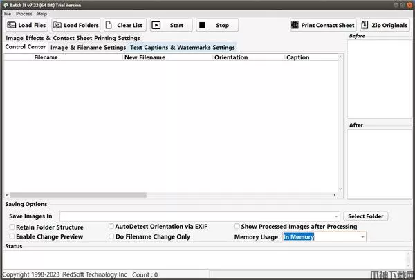 Batch It官方版是一款基于Windows的GUI批处理图像处理器。当我们在处理大量的图片的时候,一张一张的处理修改,就会很觉得很枯燥乏味,许多希望有一个能一次全部处理所有图片的工具出现,Batch It就能很好的解决这个难题。Batch It支持各种格式的图片批处理,能够调整图片的尺寸大小,能够调节图片亮度、对比度、Gamma、锐度、饱和度等等,还可以创建各种图像,或是添加一些标题标签,再添加水印时还能够提供透明度来调整水平的清晰度,修改处理后的图片,能够以各种格式保存,像常见的JPEG、JPEG 2000,BMP,PNG和TIFF格式都有所支持。Batch It软件界面设计美观,操作方便,欢迎有需要的朋友下载体验!