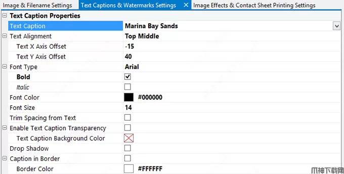 3、在图像上或水平或垂直的创建边界中添加罗马化或Unicode文本标题或版权标签。您可以使用预设对齐设置,甚至更改其偏移量,以获得所需的精确位置。