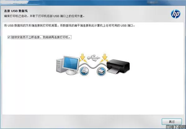 5、出现此界面是因为没有连接打印机设备,勾选上方方框,点击下方跳过;