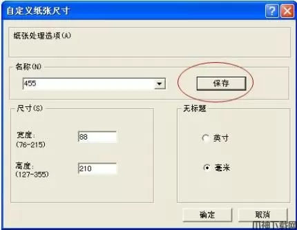 2、输入名称和尺寸,先点击保存,再点确定;
