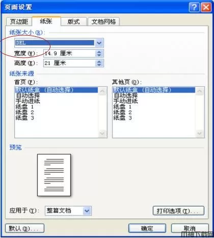 4、打开一个Word文档之后,点击页面设置 - 纸张,选择设置的自定义纸张,然后点确定;