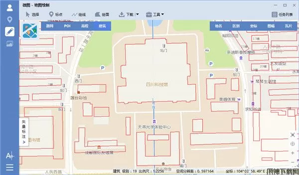 可以下载全国大中型城市的矢量建筑数据,并可以将数据导出为SHP、DXF、TAB或KML等矢量文件,如下图所示