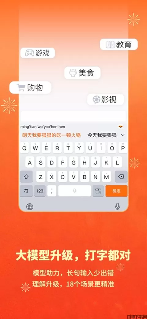【打字大模型升级】长句输入准确性显著提高,拼音越长越准确;增强场景理解,覆盖18类常见场景,输入更精准