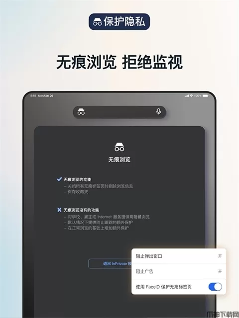 InPrivate (隐私模式)标签页不会存储你的浏览数据(如 Cookie、历史记录、自动填充信息或临时文件),更好保证搜索历史记录的私密性。