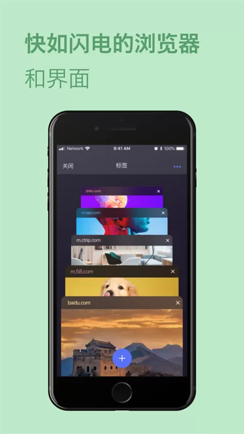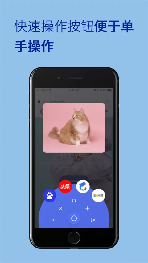 Opera 浏览器被打造为 iOS 上最快的移动浏览器。当您打开 Opera 的瞬间,它就立刻做好进行搜索的准备。快速操作按钮始终显示在浏览器屏幕上,以便您能直接进行即时搜索。