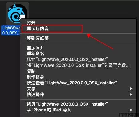 3、右击安装包,点击显示包内容