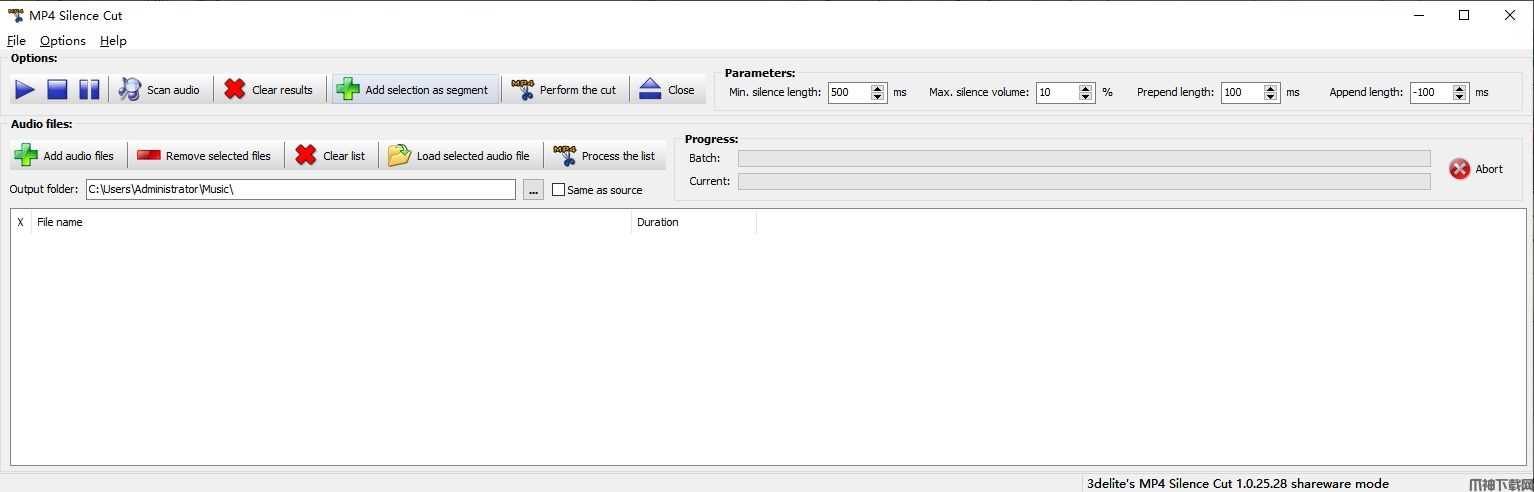 MP4 Silence Cut官方版是一款功能强大的 MP4 音频和视频文件分割器,它可以将一个完整的MP4视频分割成多个视频,还可以同时处理多个视频文件,当然你也可以使用其自带的Scan Audio搜索磁盘里面的MP4文件,添加文件后点击处理可以开始分割MP4视频文件。