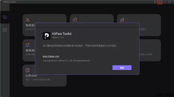 8、双击打开HitPaw Toolkit,点击红色选框下的关于,如下图所示,功能已全部免费解锁!