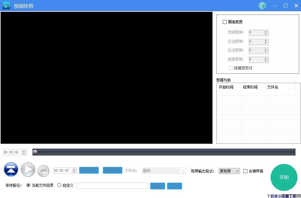 1、用户下载后直接解压打开文件夹,然后点击VideoCut.exe就能够直接启动了 2、点击[打开]按钮,打开需要剪辑的视频文件。 3、视频打开后,可以播放、暂停、停止视频,也可以拖动进度条,到需要剪辑的开始时间。 4、继续播放或拖动进度条到结束时间,点击[结束时间],设置剪切的结束时间,并加入到剪切列表。 5、设置视频剪裁,上、下、左、右剪掉多少像素,设置后,右边视频播放区域,可以预览剪裁的画面。