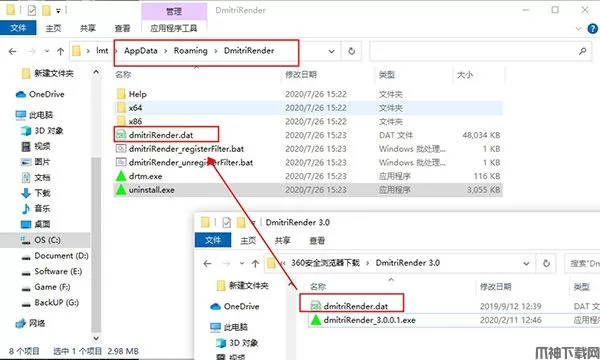 4、将dmitriRender.dat复制到软件安装路径替换,如图所示;