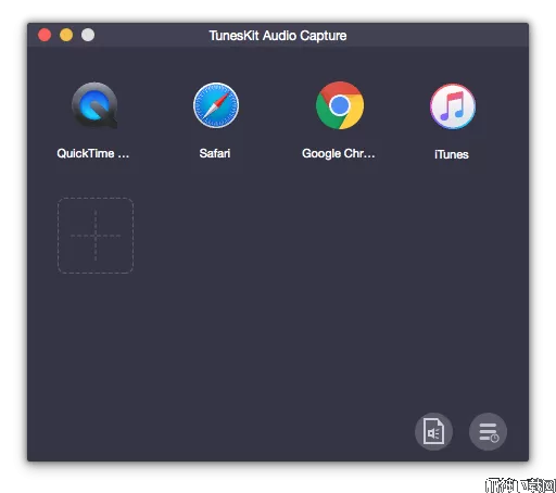 在您的 PC 或 Mac 上启动 TunesKit Audio Capture 程序。确保主界面中包含媒体播放、网络浏览器或其他程序。如果没有,请单击“+”按钮将其添加。