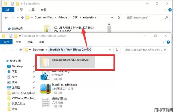2、将com.mamoworld.BeatEditAe文件夹复制到C:\Program Files (x86)\Common Files\Adobe\CEP\extensions\