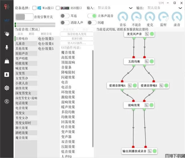 爱调音官方版是一款功能强大的声卡调音软件。软件可以帮助用户轻松简单的对声卡进行调音处理,支持Windows接口和ASIO接口,占用CPU极低,绿色稳定;同时该软件非常的小巧,占用CPU低,可以完美的稳定运行,使用也是非常简单。使用它,你也可以成为调音师,并且软件内置顶级VST机架,支持所有VST插件,还内置了几百种效果,是声卡调试的绝佳工具。本次版本包含了ASIO功能,VST机架功能,效果制作,录音,喝彩伴奏声,语音包快捷键,在线音效下载等功能,有需要的朋友可以下载试试哦。