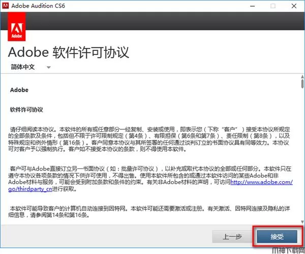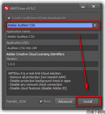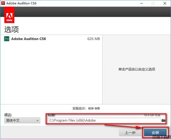 16、第一个选项卡选择Adobe Audition CS6,点击“Install”;