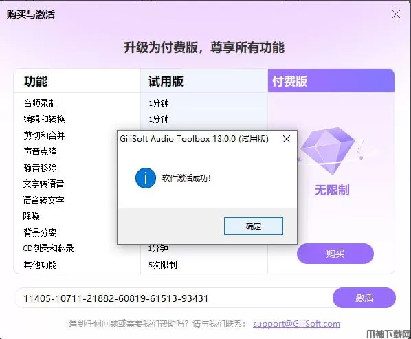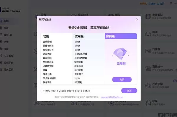 4、打开Audio Toolbox,第一次将弹出注册提示,输入下面的激活码:11405-10711-21882-60819-61513-93431