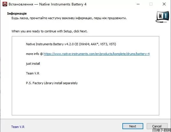 3、再运行Native Instruments Battery v4.2.0 CE.exe开始安装;