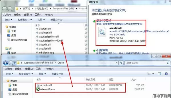 5、先将“Crack”文件夹内文件移入软件根目录下,替换原文件。