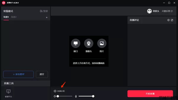 在直播助手左上角,就可以不同的场景进行场景切换。