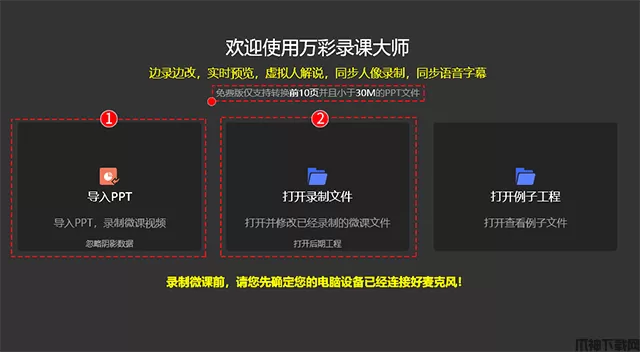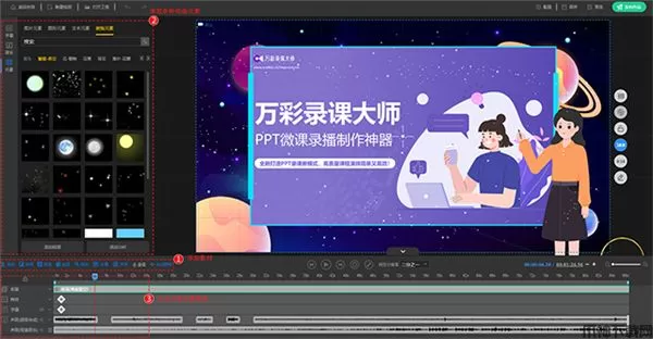 万彩录课大师官方版是一款非常好用且实用的高清屏幕录像软件,该软件不仅专注于各种PPT课件课程的录制和编辑以及内置大量的素材,而且还提供了丰富的录制和编辑功能,让用户们可以自由地创建专业水平的教学视频。
