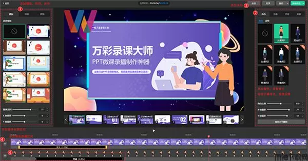 万彩录课大师官方版是一款非常好用且实用的高清屏幕录像软件,该软件不仅专注于各种PPT课件课程的录制和编辑以及内置大量的素材,而且还提供了丰富的录制和编辑功能,让用户们可以自由地创建专业水平的教学视频。同时还支持添加动画人物解说角色、进场和出场动画效果以及其他各种动画特效等各个方面来致力于为教育工作者提供优质的教学工具。