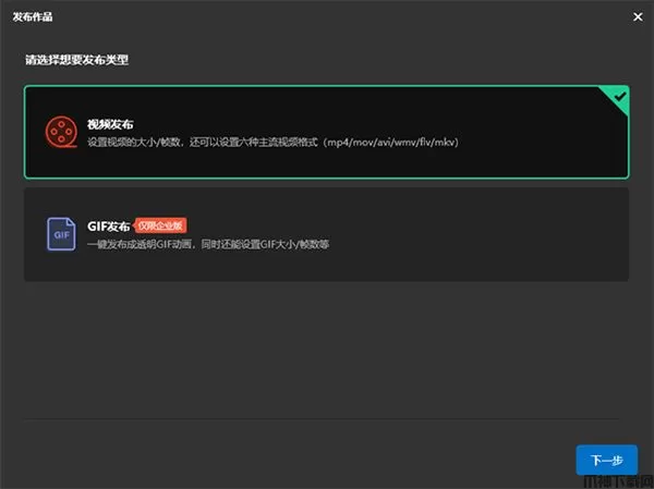 视频编辑完毕后可发布为视频格式和GIF格式。六种主流视频格式如*.mp4、*.mov、*.wmv、*.avi、*.flv、*.mkv可选,透明可循环播放GIF一键发布。