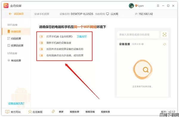 由于很多小伙伴都还不知道金舟投屏电脑版怎么用,为此小编也是特地带来了这篇方法教程,来为大家讲解一下软件的投屏方法,一起来看看吧!