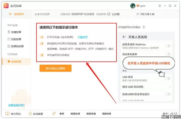 USB连接投屏,无需担心网络问题,随时随地,即连即投。