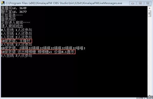 稍等一会等待连接聊天室。如果显示连接失败,关闭窗口,再次点击’查看聊天/送礼消息’。连接成功后,聊天消息和礼物消息如下图显示在窗口中: