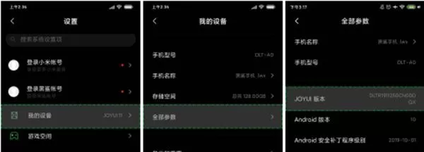 a.前往黑鲨游戏手机【设置】-【我的设备】-【全部参数】中连续点击【JOYUI版本号】激活【开发者模式】
