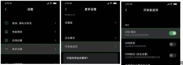 b.黑鲨手机【设置】-【更多设置】-【开发者选项】中打开【USB调试】功能