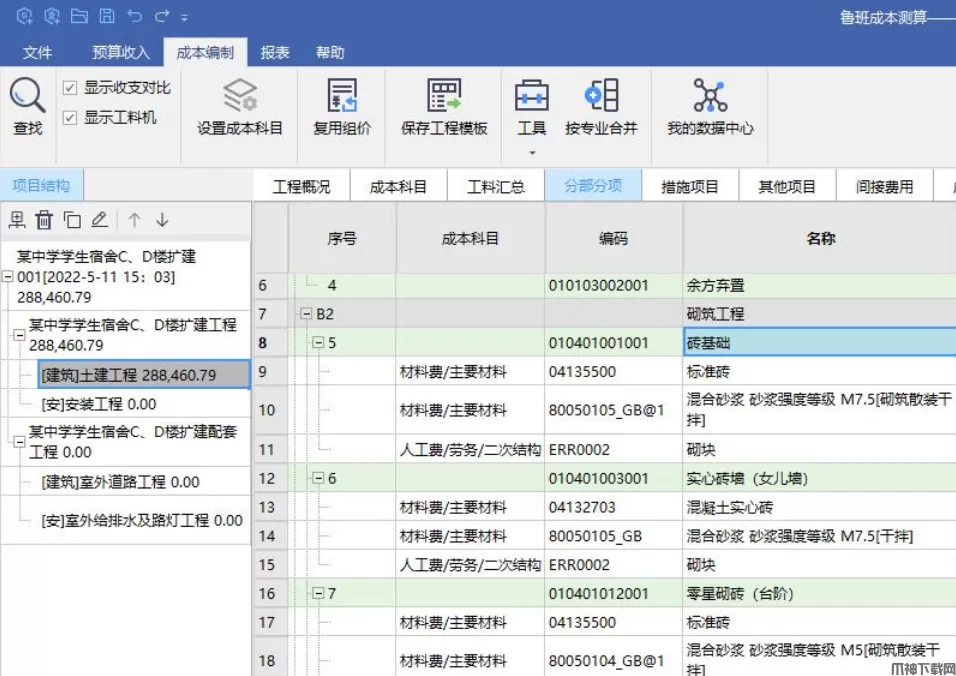 鲁班成本测算软件是一款专为建筑行业设计的先进工具,旨在帮助企业在投标、成本控制和财务管理等方面实现高效管理,通过招投标接口文件、造价标准文件、Excel导入,把完整的预算数据和成本一起保存,自动形成各类成本数据间的逻辑计算,减少造价人员繁琐