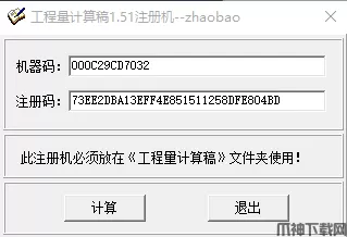 3、回到安装包,将“工程量计算稿注册机1.54.exe”注册机复制到程序的安装目录中,默认路径为C:\Program Files\工程量计算稿,之后双击打开,将之前复制的机器码粘贴到注册机的机器码中,并点击计算即可获取注册码