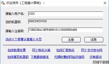1、安装完成,双击桌面上的“工程量计算稿”快捷方式,弹出注册窗口,复制机器码,然后暂时放置一边