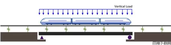 增加了模拟铁路与桥梁相互作用的功能,可考虑道砟和扣件对轨道的非线性支撑作用。支撑属性可随车辆荷载而变化。