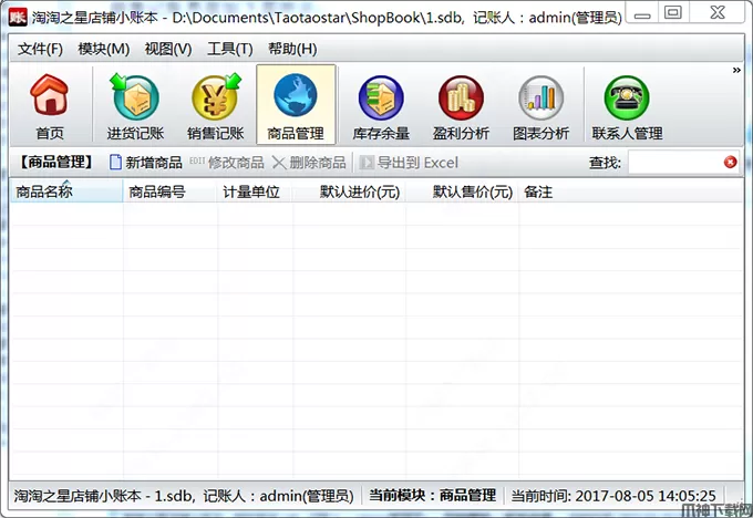 对所有商品的名称、编号、计量单位、默认进货单价、默认销售单价等属性进行添加、修改、删除、导出等;