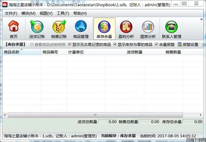 对所有商品的进货数量、销售数量以及库存量进行统计。可以设置余量报警;