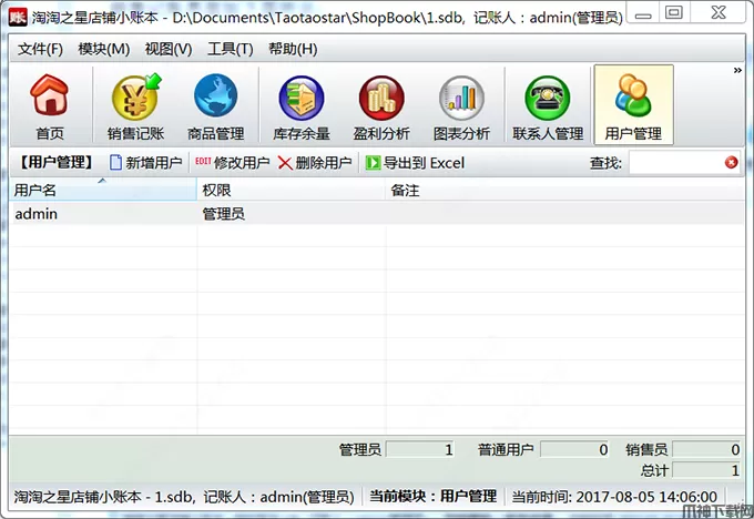 一个账本支持多个用户,用户分为管理员、普通用户、销售员三类,不同类型的用户有不同的权限;