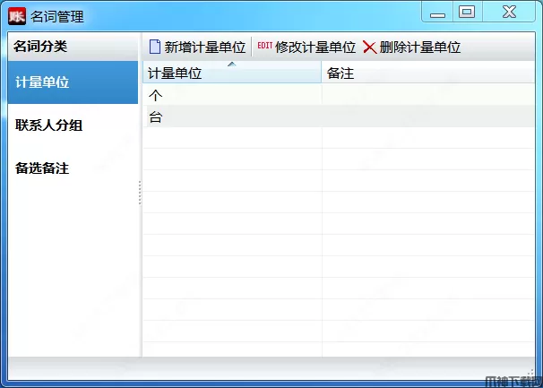 可以设置商品的计量单位、联系人分组及备选说明;