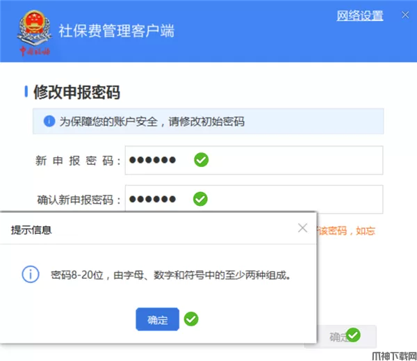 首次使用用户通过系统校验后,系统将强制要求修改申报密码,用户按要求设置新密码并保存即可。