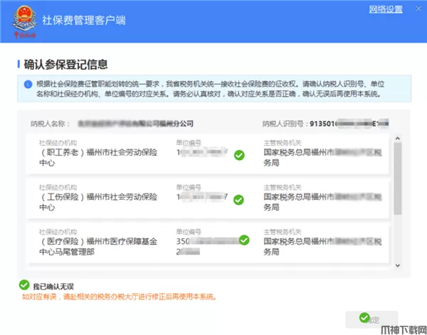 设置新申报密码后,系统会自动带出该用人单位所有参保登记信息进行核实确认。确认无误后,系统首次登录结束。