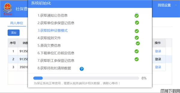 初始化信息共八项,第八项获取待批扣清册数据为获取医保征集信息,未获取不影响继续使用,直接点击确定跳过即可。