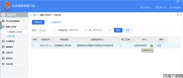 职工缴费工资申报成功后如下图,缴费工资申报成功不代表社保费申报完成,仅是该用人单位具体参保职工纳入社保费申报管理的开始。