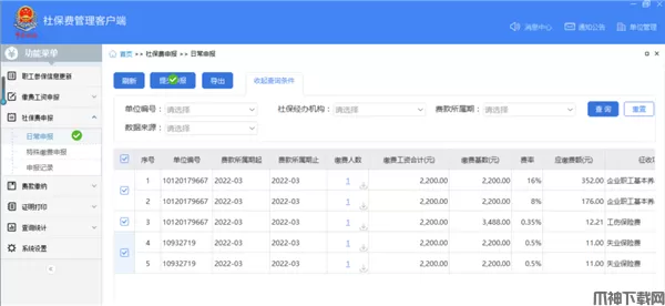 3、缴费管理:软件提供了缴费管理功能,可生成员工社保费用清单,并记录每期的缴费情况。管理员可以轻松查看和管理员工的社保缴费记录,确保按时足额地缴纳社会保险费用。
