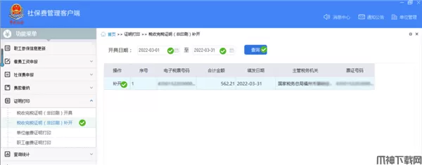 有需要社保费缴费证明的用户可以通过“单位缴费证明”模块开具社保费缴费证明。