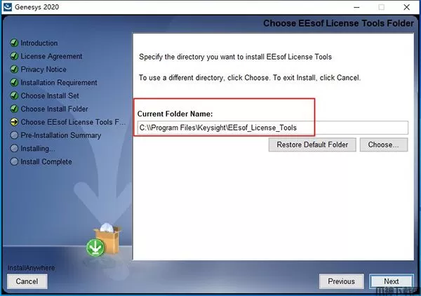 默认情况下为:C:\Program Files\Keysight\EEsof_License_Tools