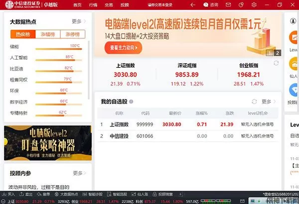 3、启动软件即可查看最新的中信建投证券卓越版资讯,软件功能十分齐全,支持在线交易等。