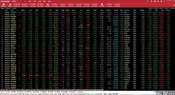 6、在行情页面可以看到各类股票证券的情况总览,上方的菜单栏还有持仓、报价、检测、指数、行情等具体功能,下方可以选择证券分类。
