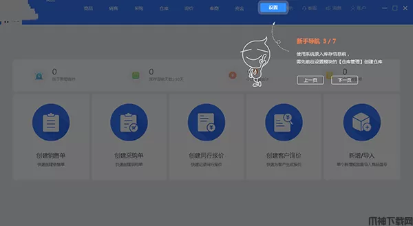 6、使用系统录入库存信息前,需先前往设置模块的【仓库管理】创建仓库
