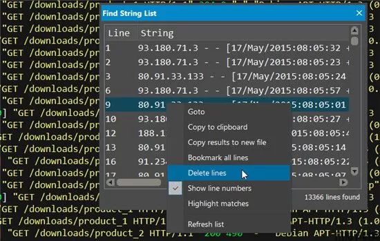 如果您曾经想过,“如何摆脱该文件中包含_____的行?” 那么您会喜欢“查找字符串列表”中的这一小巧但非常有用的功能!右键单击列表,然后选择“删除行”以立即将其从文件中删除。就这么简单!