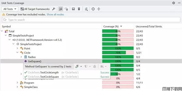 使用覆盖过滤器自定义覆盖率分析。从coverage快照中排除特定项目时,dotCover会立即重新计算coverage统计信息。